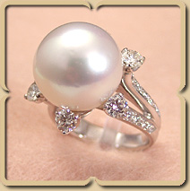 ←13mmの南洋真珠のリング 柔らかい腕のラインにメレダイヤ をセットしました。